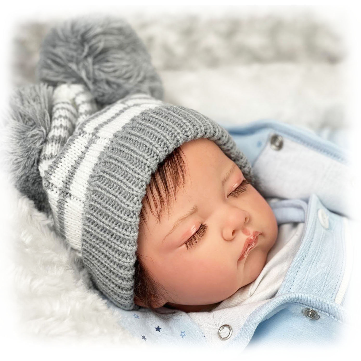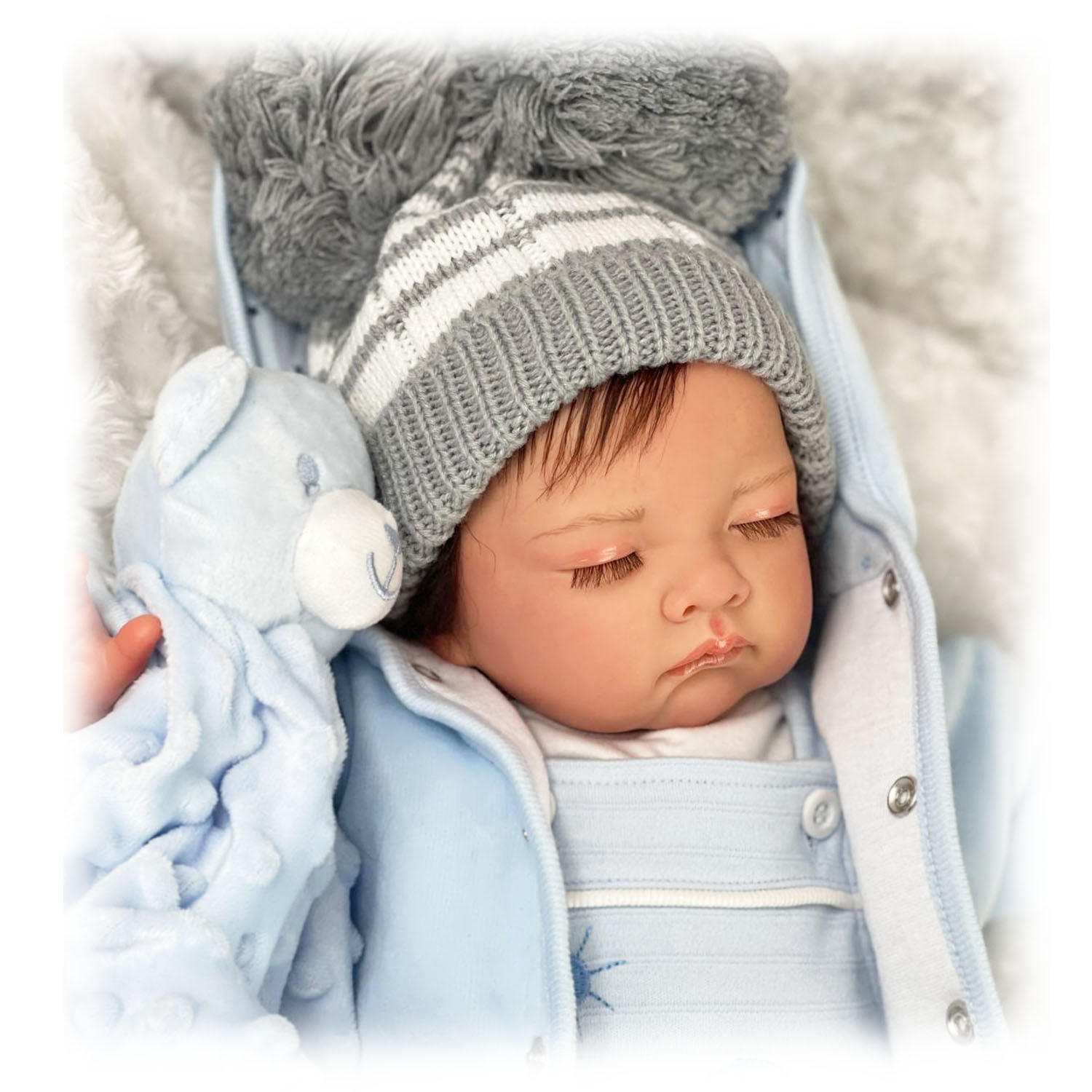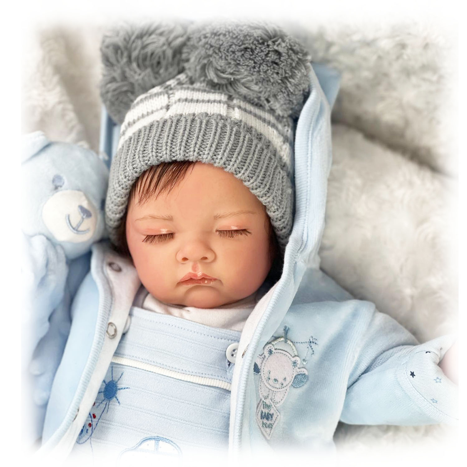 Axel is a very special baby designed and created with love, this fine reborn baby is like a work of art. He is 18” long, Handmade too with love, the dolls look just like real babies. He is a truly stunning baby, with beautiful closed eyes,