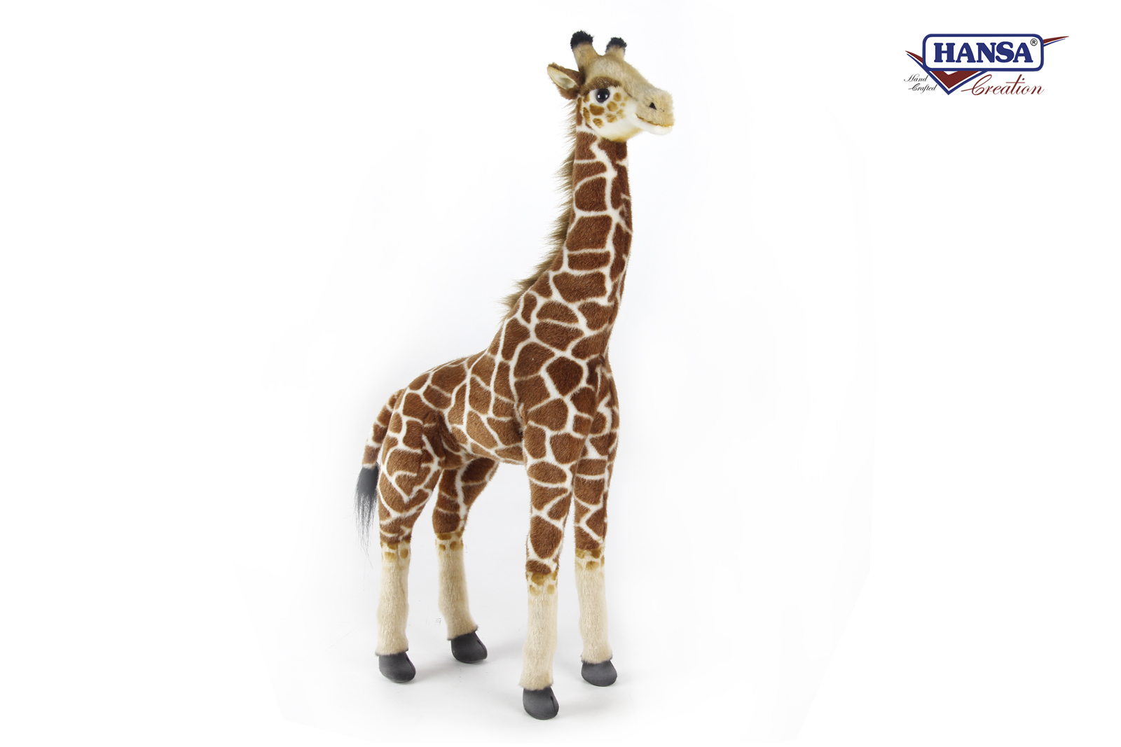 A lovely Giraffe, he is a 62cm tall cuddly soft toy made by the creators of realism – Hansa.