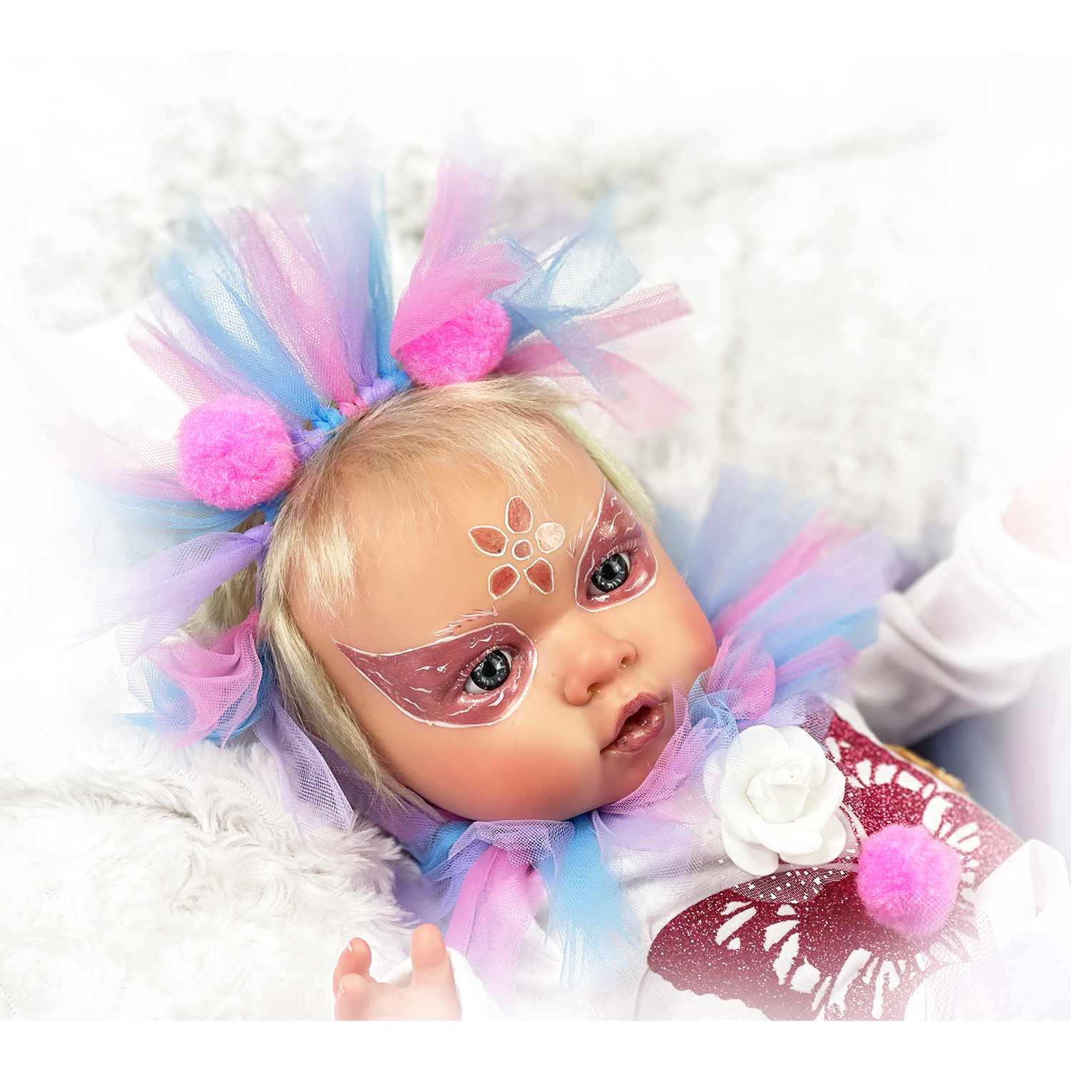 Enter the fun world with Rosalba the Reborn Clownette, adopt her now with her adorable one of a kind outfit!
