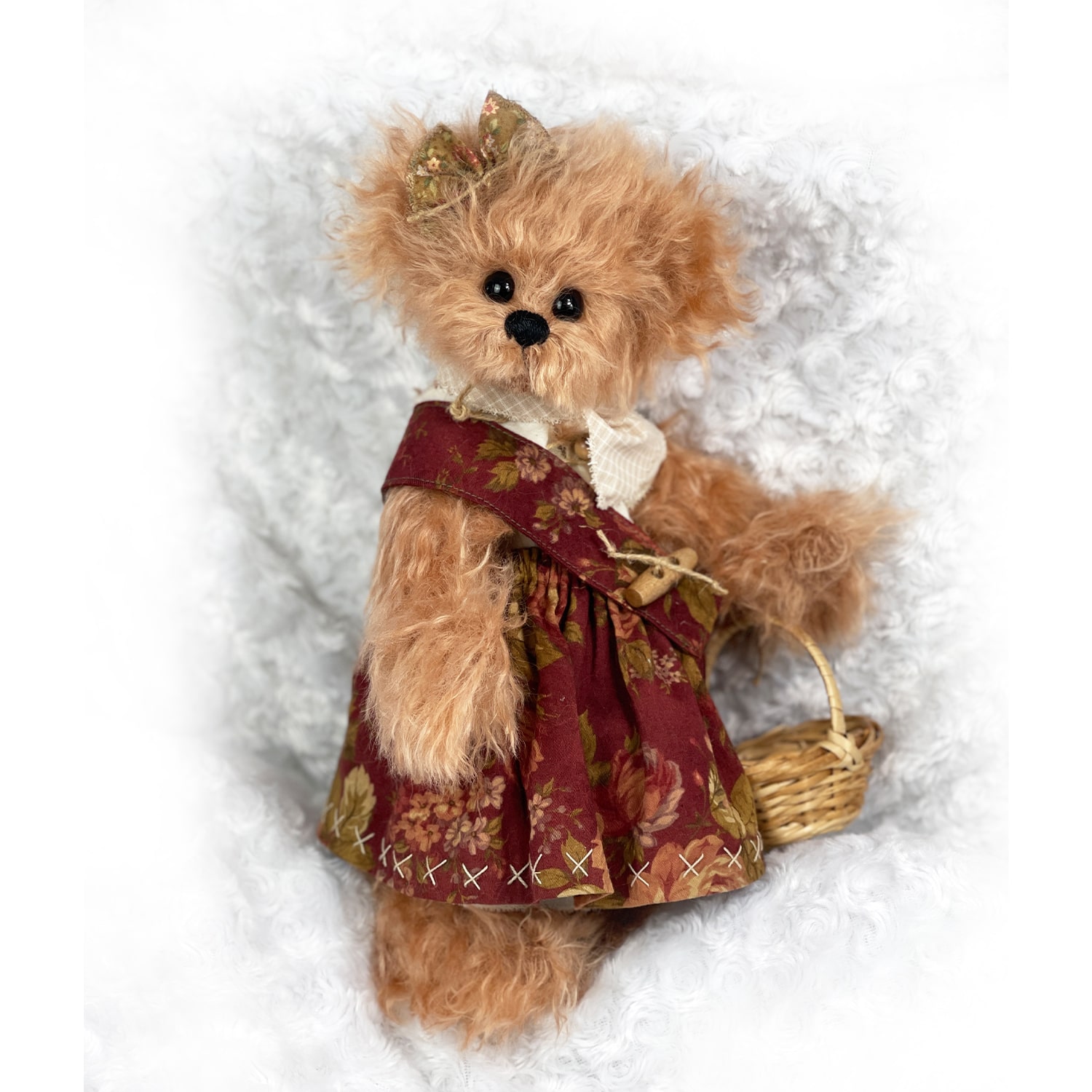 She is lovingly handmade in the finest mohair, fully jointed and weighted to feel like a baby in your hands.