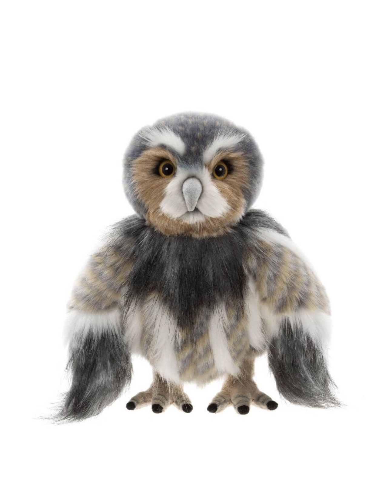 Meet Wing Commander Swift, one of four enchanting owls in our highly anticipated 2026 Plush Collection. Though the smallest of the parliament, Wing Commander Swift proves that true presence isn’t measured in size. Petite yet poised, he stands proudly beside his fellow owls with quiet confidence and unmistakable wisdom. Expertly crafted in beautifully blended tones of soft grey, warm amber, deep black, and creamy white, Wing Commander Swift captures the charm of the woodland animal in luxuriously soft plush. His large, amber-gold eyes add a thoughtful, curious look, while his light grey beak and fluffy facial markings create a wonderfully lifelike expression. With generously sized wings and a rounded, cuddly body, he’s designed to be as comforting as he is captivating.